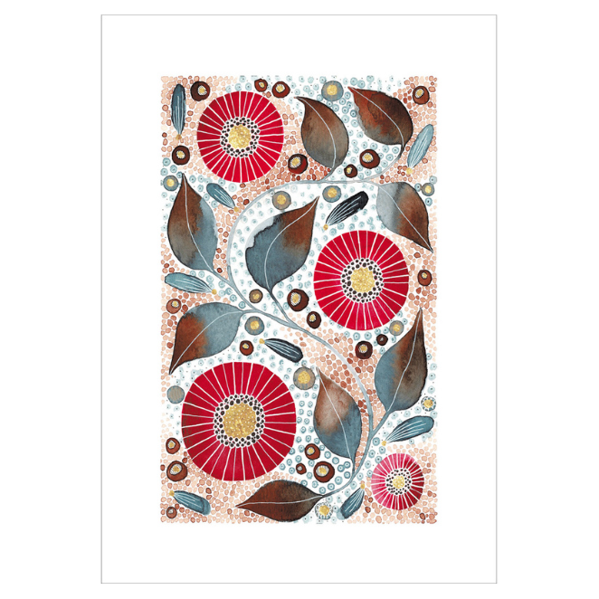 Artist and illustrator Kate Rebecca Leach is based in Hertfordshire. Her work is inspired by nature, from flowers and greenery to gemstones and jewels. Her obsession with embellishment means her work often features a myriad of dots, decorations, and more importantly gold!