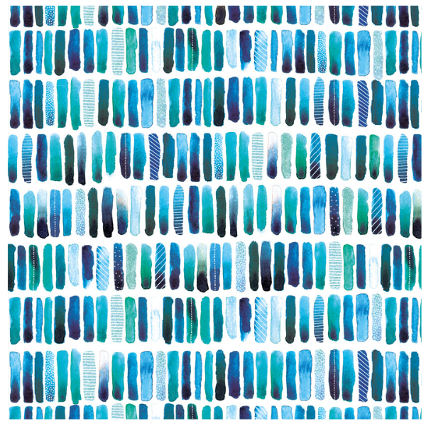 Kali Stileman has captured the charm of the Dorset Coast in this design. Blending cool blue tones of the water with the bright colours of the buoys, boats, and beach huts, the geometrical patterns bring fresh and sophisticated vibes to any occasion.