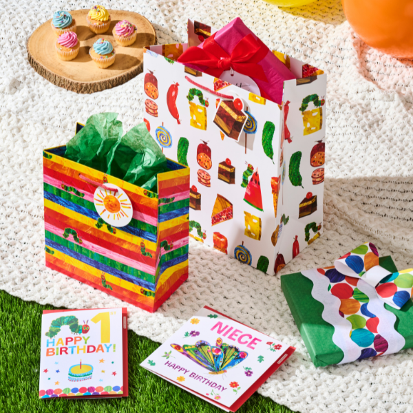 Celebrate special moments with the beloved charm of The Very Hungry Caterpillar. Featuring Eric Carle’s iconic illustrations, these gift bags bring playful colour and timeless joy to every present. Perfect for birthdays, baby showers, and family celebrations, they make gifting as delightful as the story itself!