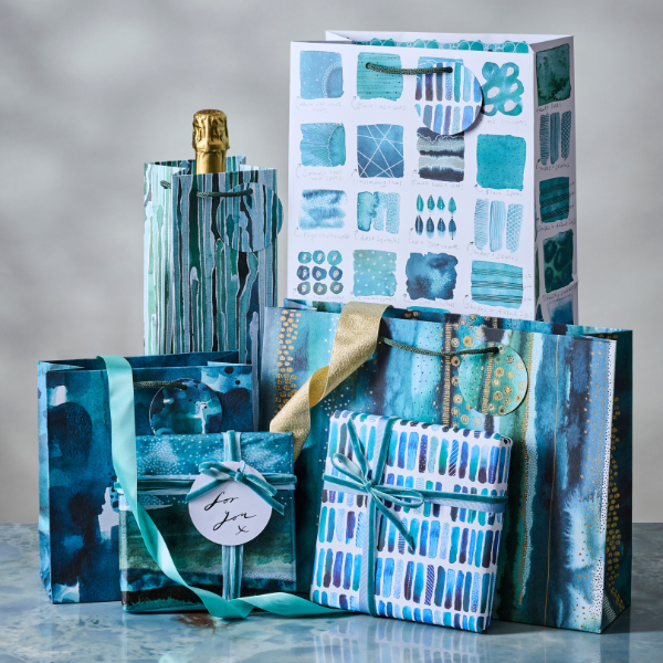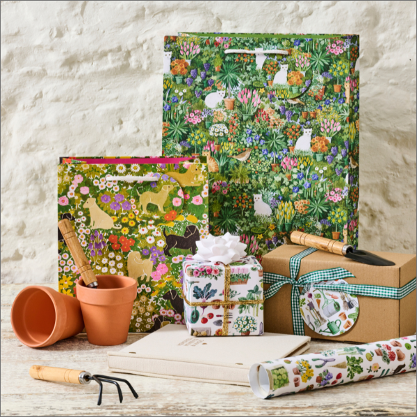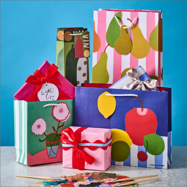 Nothing marks a celebration quite like a toast. In one of Emma Bridgewater’s most famous styles, this collection of bags, tags and roll wrap convey jubilance and cheer through bold type and a contrasting colourway, making them the perfect way to commemorate a special day.